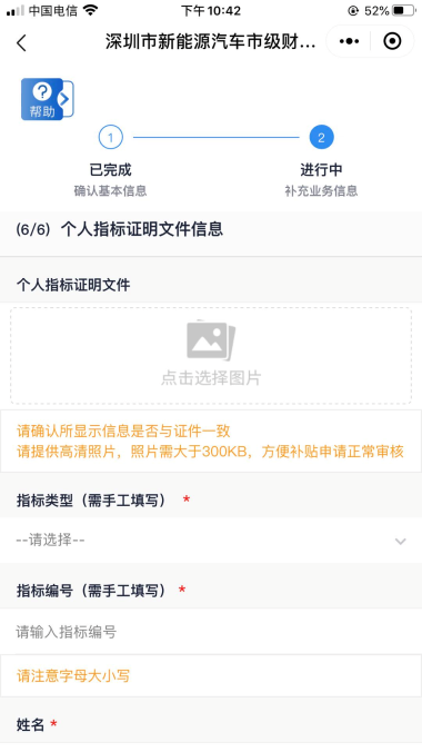 步驟8:購車類申報信息——填報個人指標(biāo)證明信息