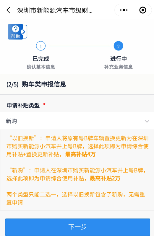 步驟5:購車類申報信息——選擇申請補(bǔ)貼類型