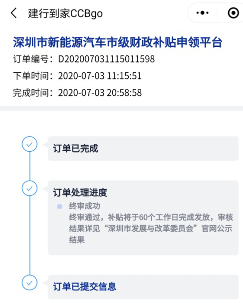 客戶可通過i深圳微信公眾號、深圳市發(fā)展和改革委員會官方網(wǎng)站或微信公眾號、深圳交警微信公眾號或建行到家CCBgo小程序登錄“深圳市新能源汽車市級財政補(bǔ)貼申領(lǐng)”平臺。