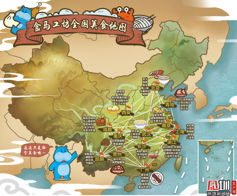 目前,盒馬工坊已覆蓋全國(guó)23個(gè)城市,不僅在每個(gè)城市做到因地制宜、本地本味,還把很多地方美食帶到了各地,形成了一張流動(dòng)的全國(guó)美食版圖。