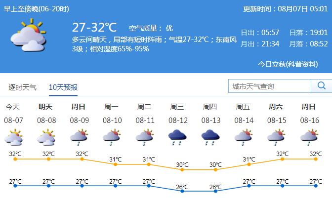 見圳客戶端·深圳新聞網(wǎng)2020年8月7日訊 降雨暫緩,高溫又卷土重來。8月7日白天,全市以多云天氣為主,偶有短時陣雨,早晚最低氣溫在27℃左右,中午前后最高氣溫在32℃左右,漸趨悶熱。市內(nèi)維持2-3級東南風(fēng);空氣濕度大,相對濕度65%-90%。
