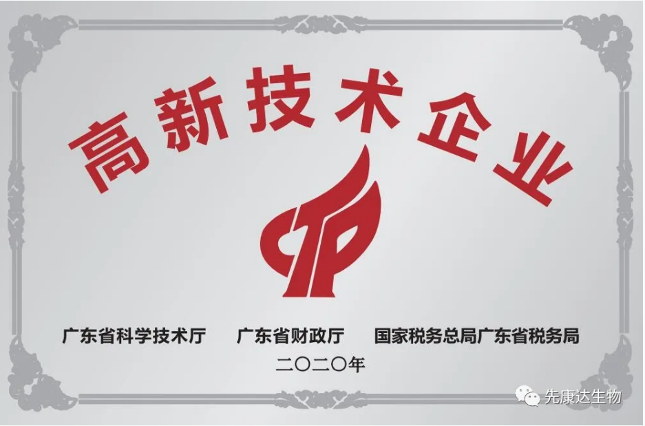 近日,廣東省科技廳公布廣東省2020年度第一批國家高新技術(shù)企業(yè)名單,廣東先康達(dá)生物科技有限公司赫然名列其中,這標(biāo)志著先康達(dá)生物邁上一個(gè)更大的臺(tái)階。