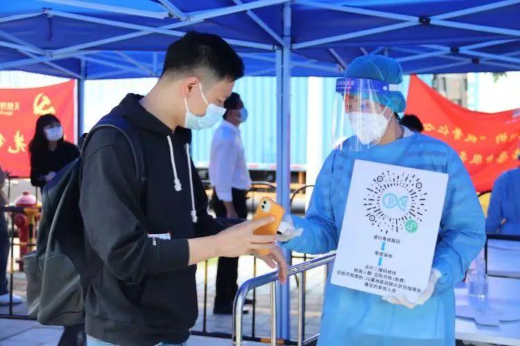 “之前一直在居住的小區(qū)做義工,在核酸檢測點做義工還是第一次,能為居民提供力所能及的服務,我覺得非常有意義?!痹谄荷絼?chuàng)新廣場核酸檢測點,根之然生物科技有限公司創(chuàng)始人、香港青年趙曼弛一絲不茍做好掃碼、測溫工作。