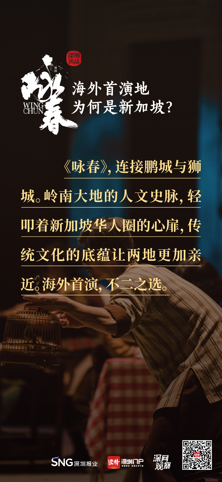 《詠春》書(shū)寫(xiě)平凡英雄的傳奇,開(kāi)詠春的一扇門(mén),只為追尋心中的那一束光?!对伌骸罚B接鵬城與獅城,嶺南大地的人文史脈,輕叩著新加坡華人圈的心扉,傳統(tǒng)文化的底蘊(yùn)讓兩地更加親近,海外首演,不二之選。