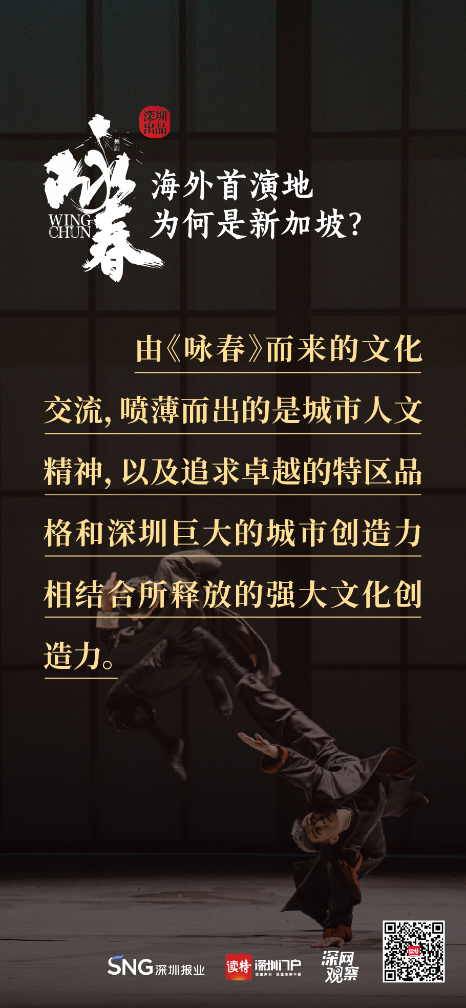 “新加坡與中國(guó)深圳血脈相連、文化相親,相信這一次的《詠春》能喚醒更多華人的文化基因!”深圳出品的原創(chuàng)舞劇《詠春》,從今年3月開(kāi)啟全國(guó)首輪巡演以來(lái),已經(jīng)走遍20多個(gè)城市,巡演很快達(dá)100場(chǎng),場(chǎng)場(chǎng)火爆,一票難求,成為國(guó)內(nèi)歌舞劇市場(chǎng)的現(xiàn)象級(jí)佳作。據(jù)媒體報(bào)道,9月27日-30日,《詠春》受邀到新加坡濱海藝術(shù)中心連演4場(chǎng),開(kāi)啟海外演出。9月16日,新加坡《聯(lián)合早報(bào)》發(fā)表長(zhǎng)文《中國(guó)舞劇<詠春>貫穿現(xiàn)代與傳統(tǒng)》稱(chēng):“這部舞劇不僅火遍神州,自從要在新加坡公演的消息傳出后,也成為獅城華人圈的熱門(mén)話(huà)題”。