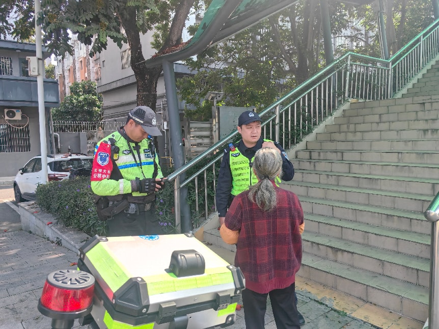經(jīng)初步溝通,老人因年事已高,言語表達(dá)不清,無法準(zhǔn)確說出家庭住址和家屬聯(lián)系方式。鐵騎隊員為老人買來礦泉水,一邊安撫其情緒,一邊耐心引導(dǎo),努力從其話語中尋找線索。在多次溝通仍無法獲取有效信息后,隊員迅速將情況上報指揮中心,并與轄區(qū)派出所聯(lián)動尋人。經(jīng)多方努力,最終成功聯(lián)系上正焦急尋人的老人家屬。