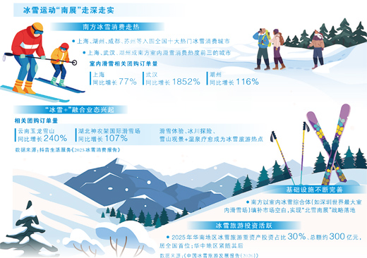 冰雪運(yùn)動(dòng)的普及,深刻改變著南方群眾的休閑選擇。室內(nèi)雪場(chǎng)鱗次櫛比,冰雪樂園人聲鼎沸,曾經(jīng)不那么容易觸及的冰雪運(yùn)動(dòng),正在走進(jìn)越來越多南方消費(fèi)者的日常,成為兼具時(shí)尚感與趣味性的休閑新選擇。隨著居民消費(fèi)能力與休閑理念升級(jí),南方冰雪消費(fèi)需求持續(xù)迸發(fā),冰雪經(jīng)濟(jì)內(nèi)生動(dòng)力不斷增強(qiáng),成為消費(fèi)市場(chǎng)亮眼的新增長(zhǎng)點(diǎn)。