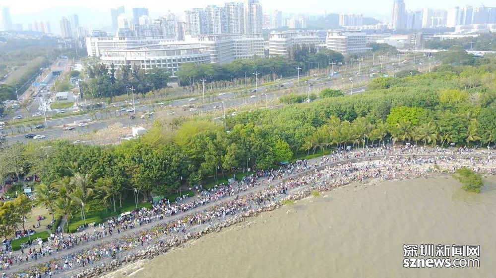 深圳人假日勤動腳,深圳灣公園被自行車堵了。