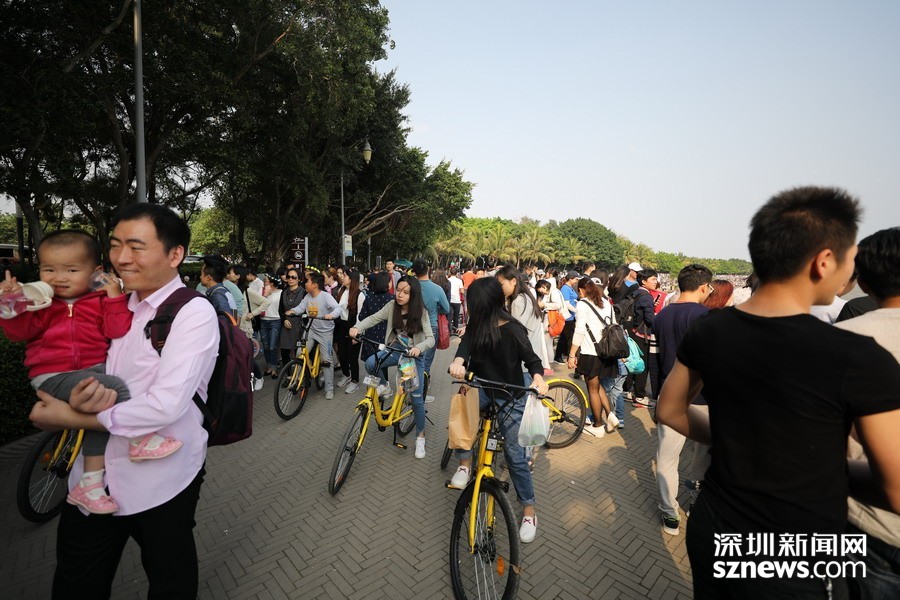 鵬城眼|深圳人假日勤動(dòng)腳 共享單車“擠爆”深圳灣