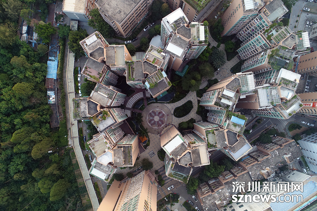 漁民村社區(qū)建筑多為高層小區(qū),社區(qū)中間開辟有居民文化廣場,從高空俯瞰,整個社區(qū)宛如一座美麗花園