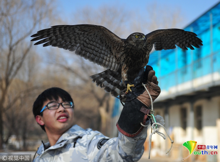 2018年3月11日,遼寧沈陽,蒼鷹等待放飛。當(dāng)日,沈陽市林業(yè)局沈陽猛禽救助中心舉行2018年首次大型公益康復(fù)野放活動,這次活動放飛的都是經(jīng)過救助中心救助后康復(fù)的猛禽,禿鷲1只、蒼鷹3只,都是國家二級保護動物,省級保護動物烏鴉1只。