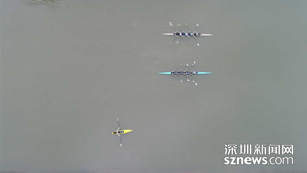 觀瀾河上的賽艇,從高空俯瞰,觀瀾河水質(zhì)相比從前已就有明顯改善