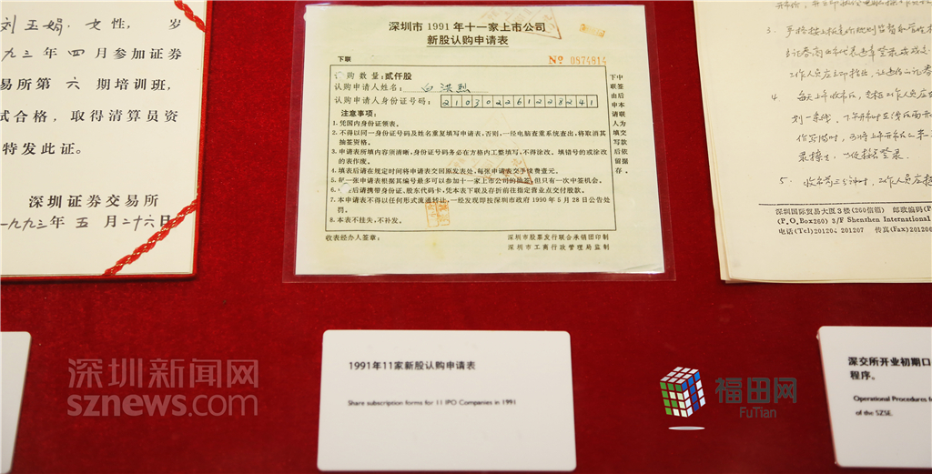 深圳1991年11家上市公司新股認(rèn)購申請表。