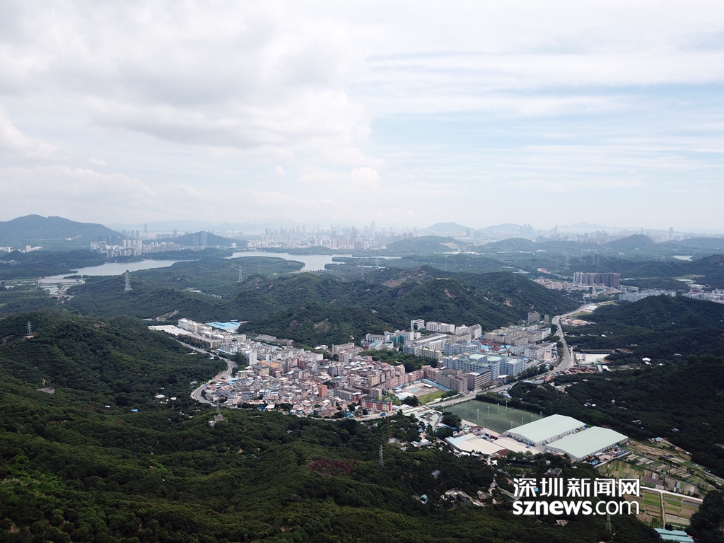 從羊臺(tái)山風(fēng)門(mén)凹山腰看西麗水庫(kù)及山腳下麻磡村