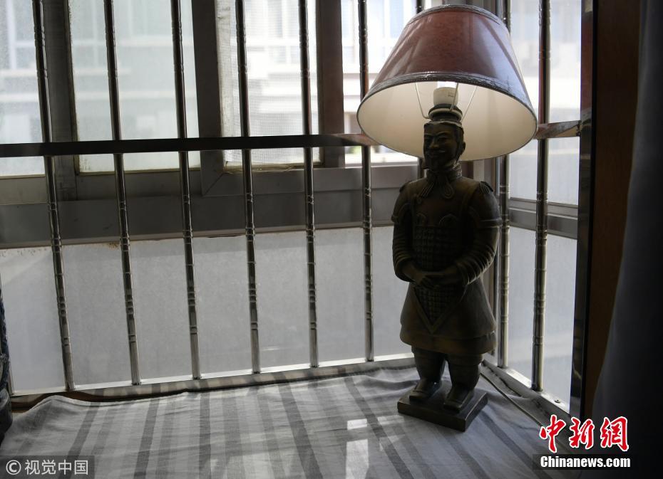 兵馬俑元素在這家民宿里被運(yùn)用在各種小細(xì)節(jié)里,圖為兵馬俑造型的臺(tái)燈。圖片來(lái)源:視覺(jué)中國(guó)