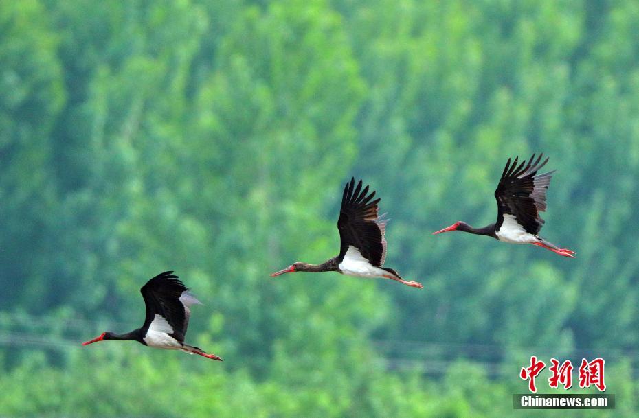 7月1日,河北石家莊平山崗南水庫(kù)下游滹沱河段發(fā)現(xiàn)成群黑鸛,最多時(shí)達(dá)12只,黑鸛是大型涉禽,屬國(guó)家一級(jí)保護(hù)動(dòng)物,也是世界瀕危珍禽,已被《瀕危野生動(dòng)植物國(guó)際貿(mào)易公約》列為瀕危物種。中新社發(fā)于英杰 攝