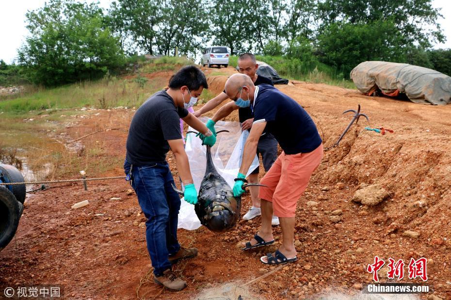 當(dāng)日16時(shí)許,中科院武漢水生所專家趕到現(xiàn)場,經(jīng)解開江豚身上的絲網(wǎng)發(fā)現(xiàn),這頭雄性成年江豚身體無明顯外傷,體重約35公斤,體長1.38米。該水生所段姓研究員判斷,該頭江豚應(yīng)該是被絲網(wǎng)纏住身體后無法掙脫,不能躍出水面呼吸最后導(dǎo)致溺亡,非常可惜。當(dāng)天下午,水生所專家將這頭死亡江豚帶回解剖并制作標(biāo)本。洪永林 攝 圖片來源:視覺中國 文字來源:九江新聞網(wǎng)
