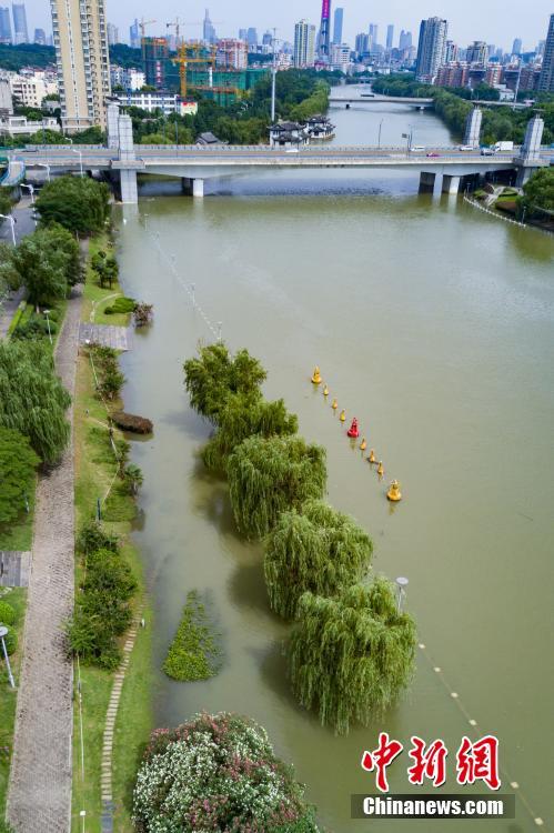 7月10日,航拍長江與南京秦淮河交匯處,樹木淹入水中。當(dāng)日,江蘇水利廳發(fā)布的水情信息顯示,長江南京段水位已降至警戒線以下。中新社記者泱波 攝