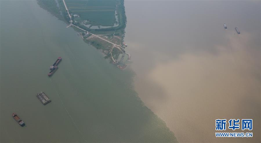 長江鄱陽湖交匯 形成兩色美景