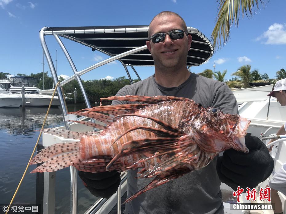 8月21日訊(具體拍攝時間不詳),近日,來自長島的Timothy Blasko打破了記錄,他捕獲了大西洋最重的獅子魚。37歲的Timothy Blasko是一名技術精湛的捕魚者,當天,他和朋友們在佛羅里達群島伊斯拉莫拉達海岸捕魚時,遇到了這條大魚。Timothy向朋友要來了魚叉,瞄準大魚的下方位置叉去,正中目標成功捕獲。當他們把這條魚和當天捕獲的其它魚排在一起時,他們猜測這條魚可能會破紀錄。“它簡直是獅子魚中的哥斯拉!” Timothy描述道,“這條巨大的獅子魚重達3.1磅,刷新了大西洋迄今最重獅子魚的國家紀錄?!眻D片來源:視覺中國