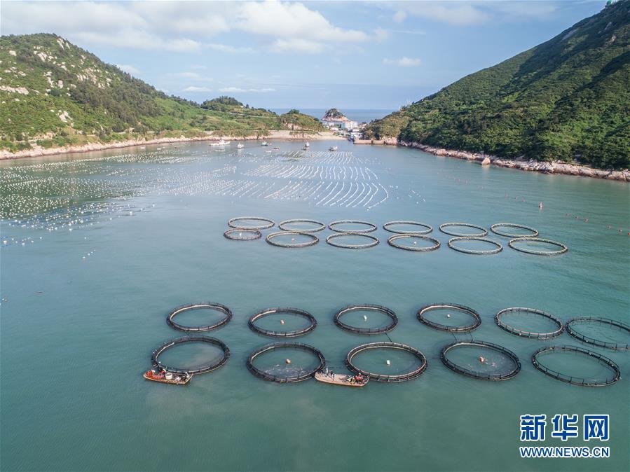8月19日,空中俯瞰南麂島(無人機拍攝)。進(jìn)入8月,浙江省溫州市平陽縣南麂鎮(zhèn)海域上大片的大黃魚、貽貝等特色海產(chǎn)品養(yǎng)殖區(qū)域迎來豐收季節(jié),養(yǎng)殖戶們駕駛漁船在養(yǎng)殖區(qū)海域進(jìn)行打撈收獲,在碧海藍(lán)天下構(gòu)成了一幅“海上牧場”的美麗豐收景象。近年來,南麂鎮(zhèn)政府引導(dǎo)漁民養(yǎng)殖戶充分發(fā)揮“靠海吃海”的資源優(yōu)勢,大力發(fā)展海洋養(yǎng)殖經(jīng)濟(jì)和海島旅游經(jīng)濟(jì),實現(xiàn)了南麂由“生態(tài)美”向“產(chǎn)業(yè)美”,“產(chǎn)業(yè)美”向“經(jīng)濟(jì)美”的轉(zhuǎn)變。同時該鎮(zhèn)堅持以大黃魚、貽貝等為特色產(chǎn)業(yè)支撐,精準(zhǔn)發(fā)展高效海洋養(yǎng)殖業(yè),重點培養(yǎng)一批新型職業(yè)漁民,依靠專業(yè)技術(shù)支持,實現(xiàn)深海仿生養(yǎng)殖,讓好生態(tài)造就好品質(zhì),重點打造南麂養(yǎng)殖品牌,組建營銷網(wǎng)絡(luò),拓展特色海產(chǎn)品市場。新華社記者 徐昱攝