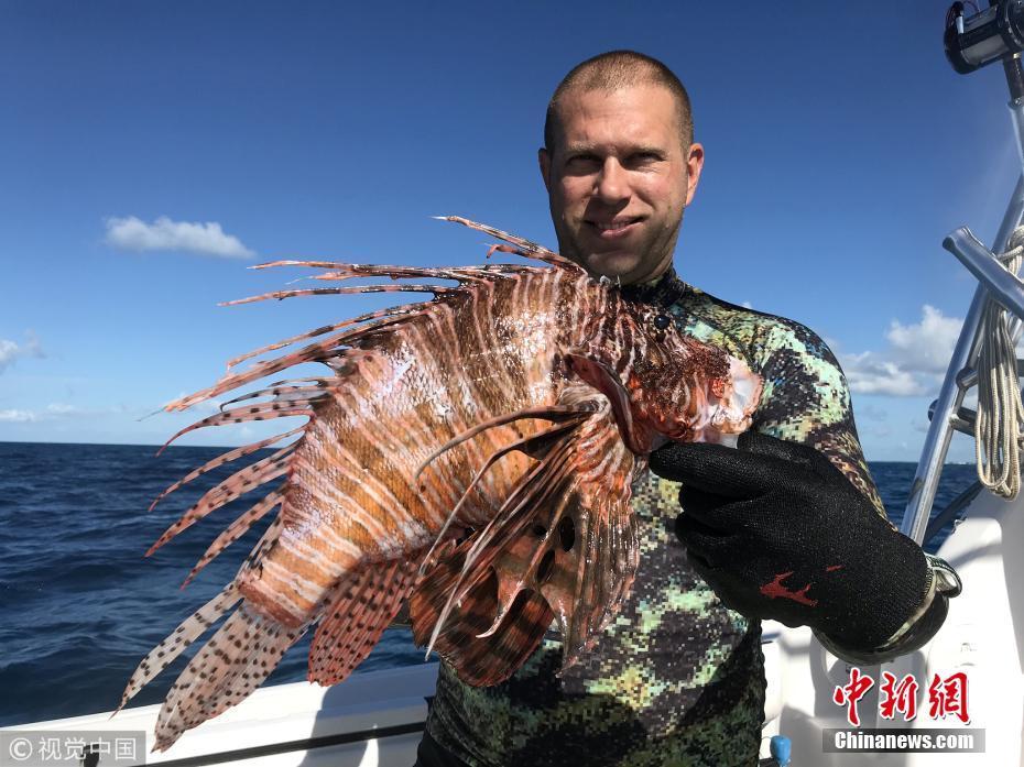 8月21日訊(具體拍攝時間不詳),近日,來自長島的Timothy Blasko打破了記錄,他捕獲了大西洋最重的獅子魚。37歲的Timothy Blasko是一名技術(shù)精湛的捕魚者,當(dāng)天,他和朋友們在佛羅里達(dá)群島伊斯拉莫拉達(dá)海岸捕魚時,遇到了這條大魚。Timothy向朋友要來了魚叉,瞄準(zhǔn)大魚的下方位置叉去,正中目標(biāo)成功捕獲。當(dāng)他們把這條魚和當(dāng)天捕獲的其它魚排在一起時,他們猜測這條魚可能會破紀(jì)錄?!八喼笔仟{子魚中的哥斯拉!” Timothy描述道,“這條巨大的獅子魚重達(dá)3.1磅,刷新了大西洋迄今最重獅子魚的國家紀(jì)錄?!眻D片來源:視覺中國