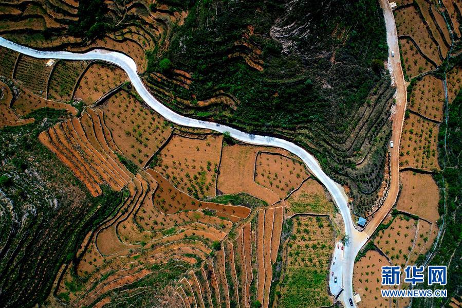 這是5月6日無(wú)人機(jī)拍攝的涉縣關(guān)防鄉(xiāng)后池村梯田和公路。初夏時(shí)節(jié),河北省邯鄲市涉縣山間的梯田綠意盎然,猶如一幅幅美麗畫(huà)卷。新華社記者 王曉 攝