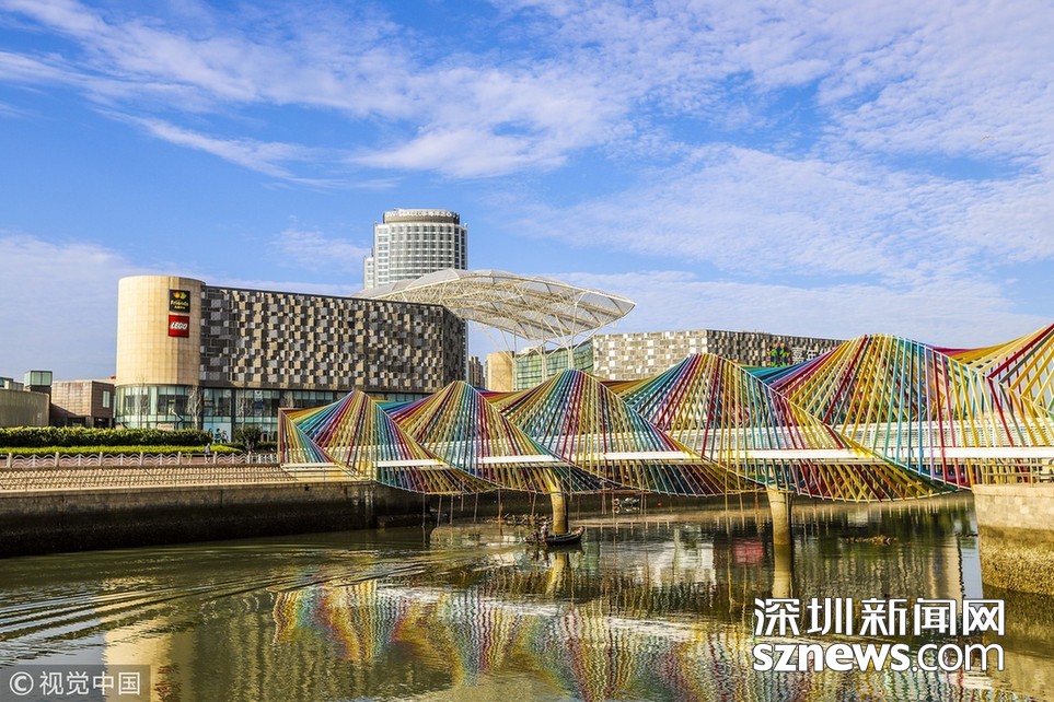 訊? 2018年9月5日,山東青島,西海岸新區(qū)為唐島灣公園量身定制的“七彩橋”驚艷亮相,整個(gè)橋身色彩斑斕,造型別致。