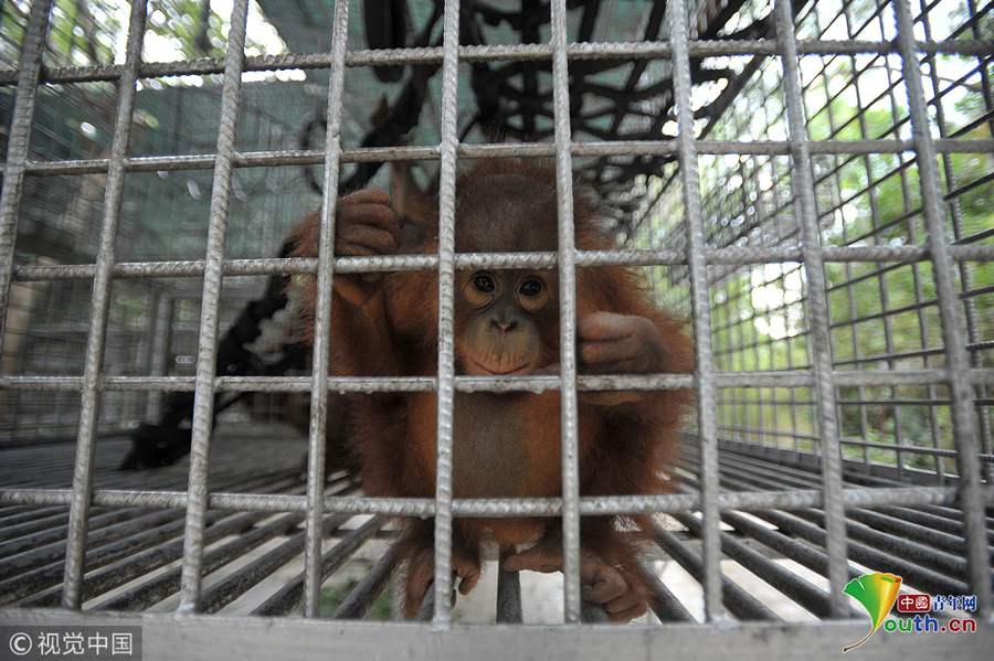 當(dāng)?shù)貢r間2018年9月18日,印尼加里曼丹克塔邦,國際動物救援(IAR)猩猩安全與保護(hù)中心里。圖片作者:Newscom