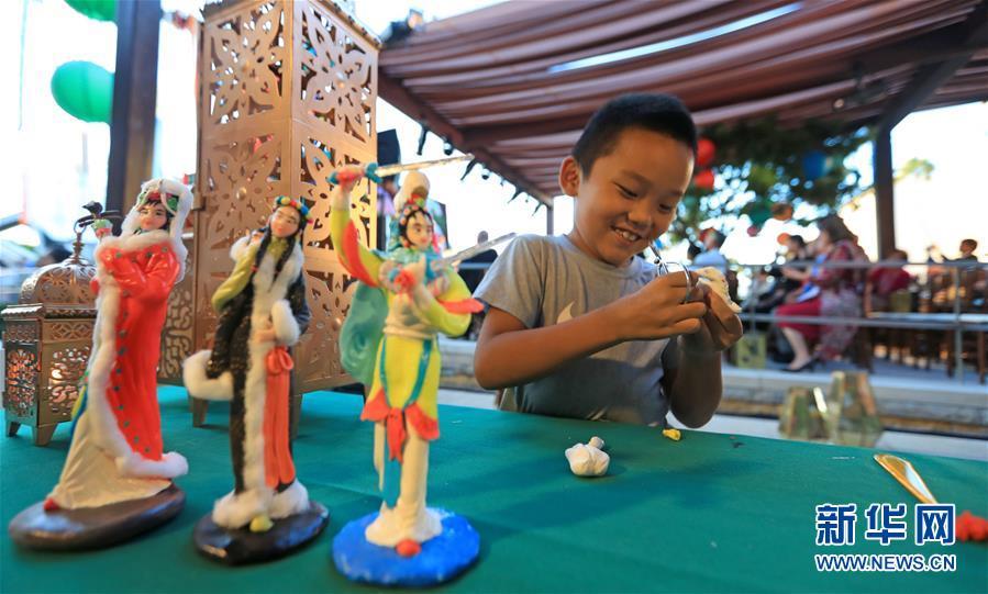 9月23日,在美國(guó)科斯塔梅薩南岸廣場(chǎng),一名兒童在中秋游園會(huì)上學(xué)習(xí)捏面人。 美國(guó)西部最大購(gòu)物中心南岸廣場(chǎng)23日晚舉辦游園會(huì),慶祝中國(guó)傳統(tǒng)節(jié)日中秋節(jié)。 新華社記者李穎攝