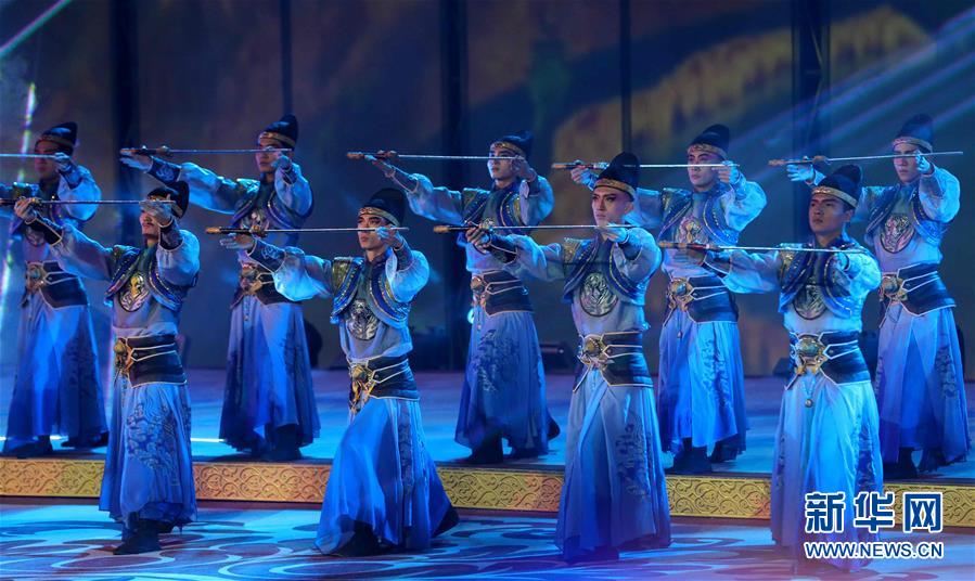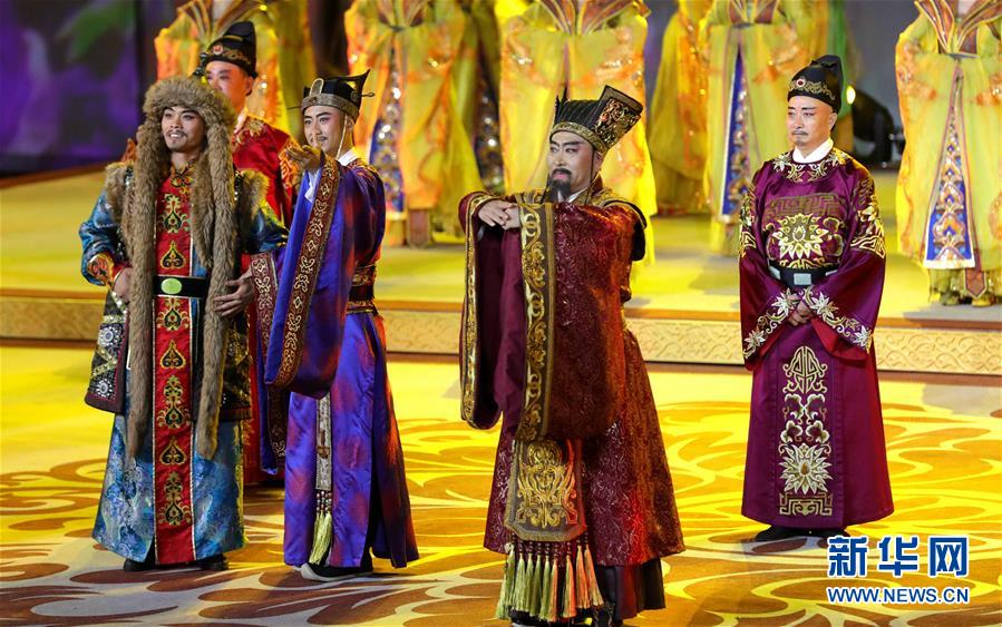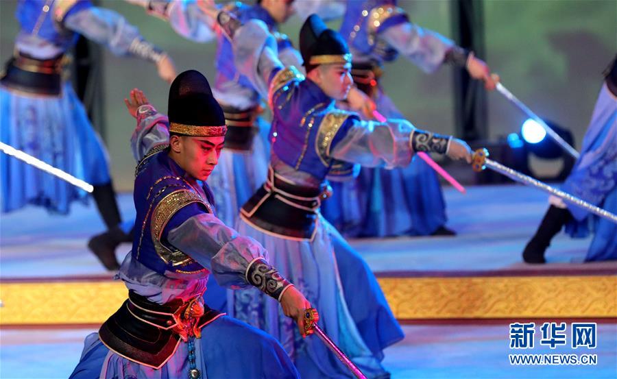 演員在表演《夢(mèng)長(zhǎng)安——大唐迎賓盛禮》(9月23日攝)。  新華社記者 梁愛平 攝