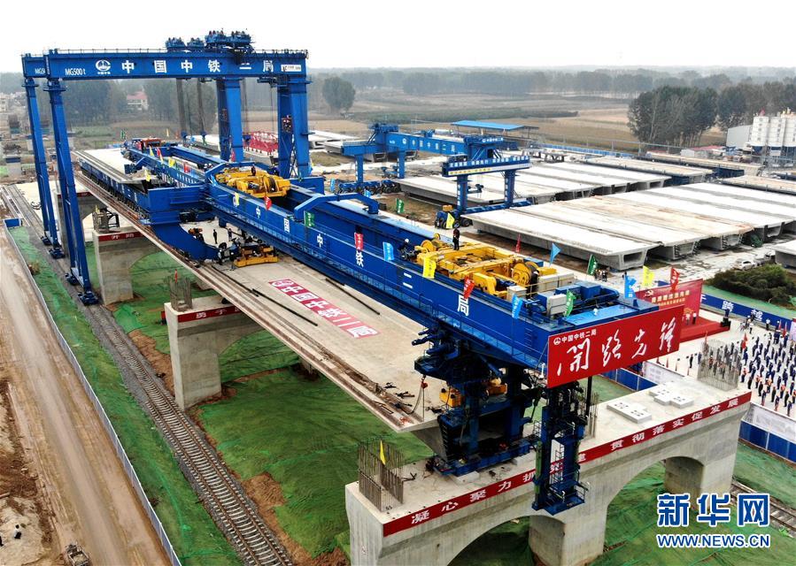當(dāng)日,我國高速鐵路40米簡支箱梁在鄭(州)濟(南)高速鐵路(鄭濮段)首架成功。鄭濟高速鐵路40米簡支箱梁為國內(nèi)首次工程化應(yīng)用。