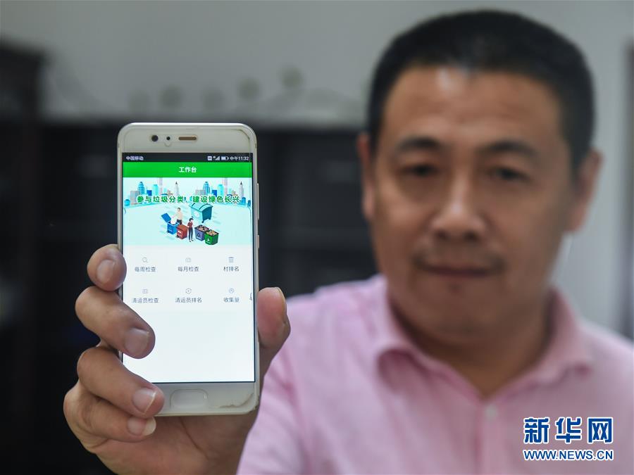 9月27日,工作人員展示垃圾分類APP的界面。從9月初開始,浙江省長興縣小浦鎮(zhèn)推廣使用手機垃圾分類智能管理平臺。通過這款A(yù)PP可以進行村民垃圾分類情況打分、清運員每日簽到、監(jiān)督員巡查等,并能即時生成農(nóng)戶垃圾分類“成績單”,所有農(nóng)戶均可通過APP查詢垃圾分類排行榜,既方便又環(huán)保。新華社記者 徐昱 攝
