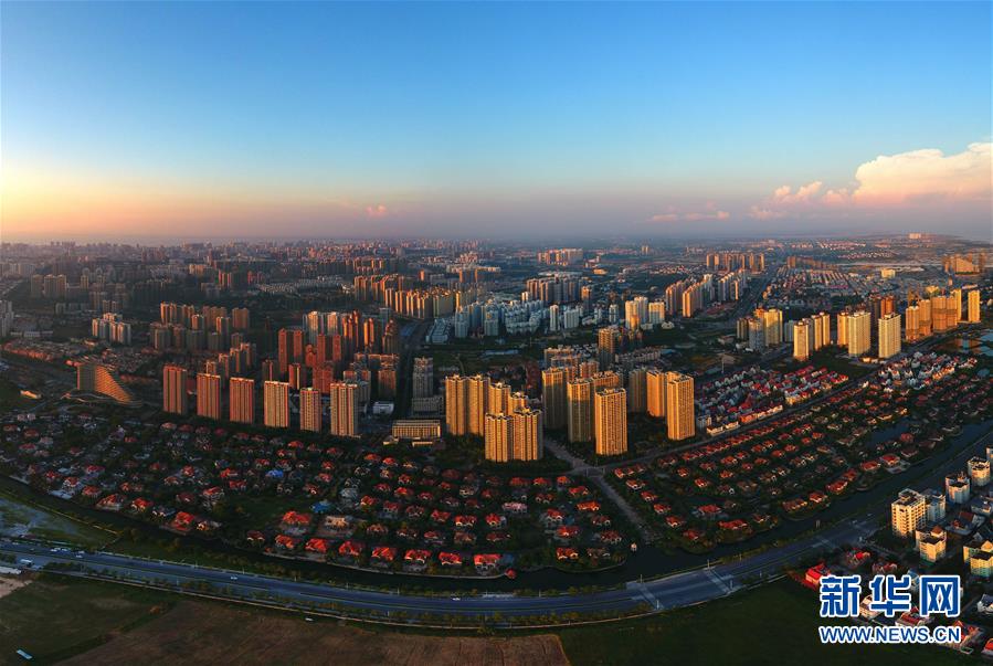這是夕陽下的廣西北海市區(qū)(9月25日無人機(jī)拍攝,拼接照片)。 新華社記者 黃孝邦 攝