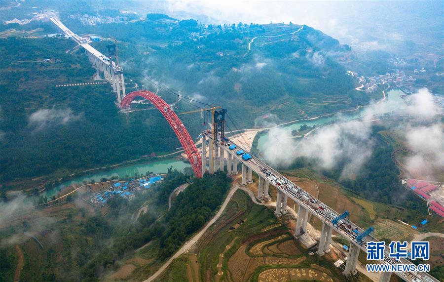 9月12日使用無人機(jī)拍攝的大小井特大橋。 目前,橫跨在貴州省羅甸縣大井河上的大小井特大橋建設(shè)進(jìn)入沖刺階段。大小井特大橋全長1.5公里,主跨450米,是世界最大跨徑上承式鋼管混凝土拱橋。據(jù)了解,該橋是平塘至羅甸高速公路關(guān)鍵性工程,對(duì)打通貴州“斷頭路”,助推滇黔桂石漠化片區(qū)脫貧攻堅(jiān)具有重要意義。 新華社記者劉續(xù)攝