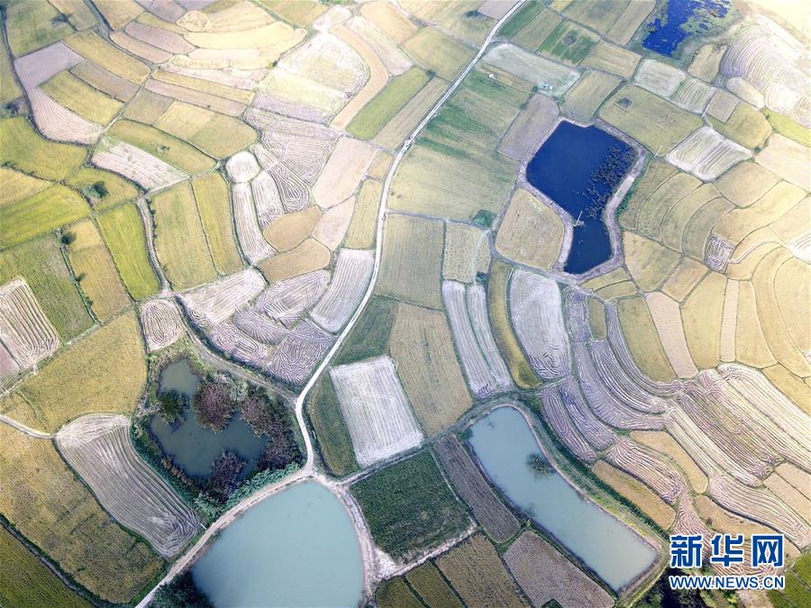 這是小崗村的稻田(9月26日無人機(jī)拍攝)。 新華社記者 劉軍喜攝