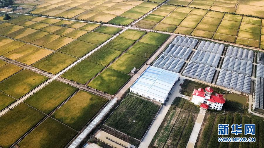這是北大荒集團在小崗村建立的現(xiàn)代化水稻生產基地(9月27日無人機拍攝)。 新華社記者 張端攝
