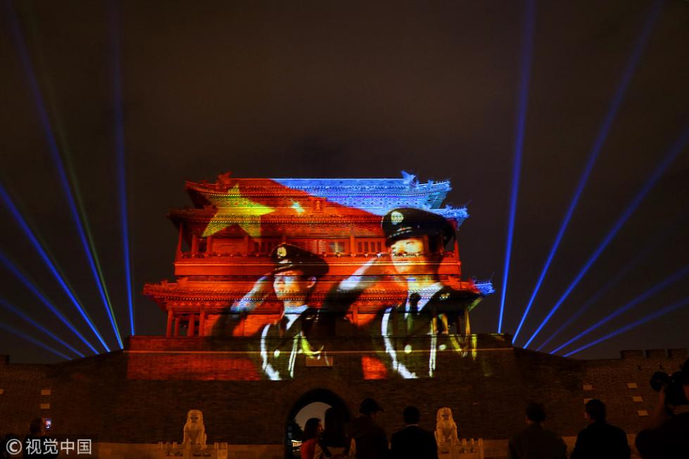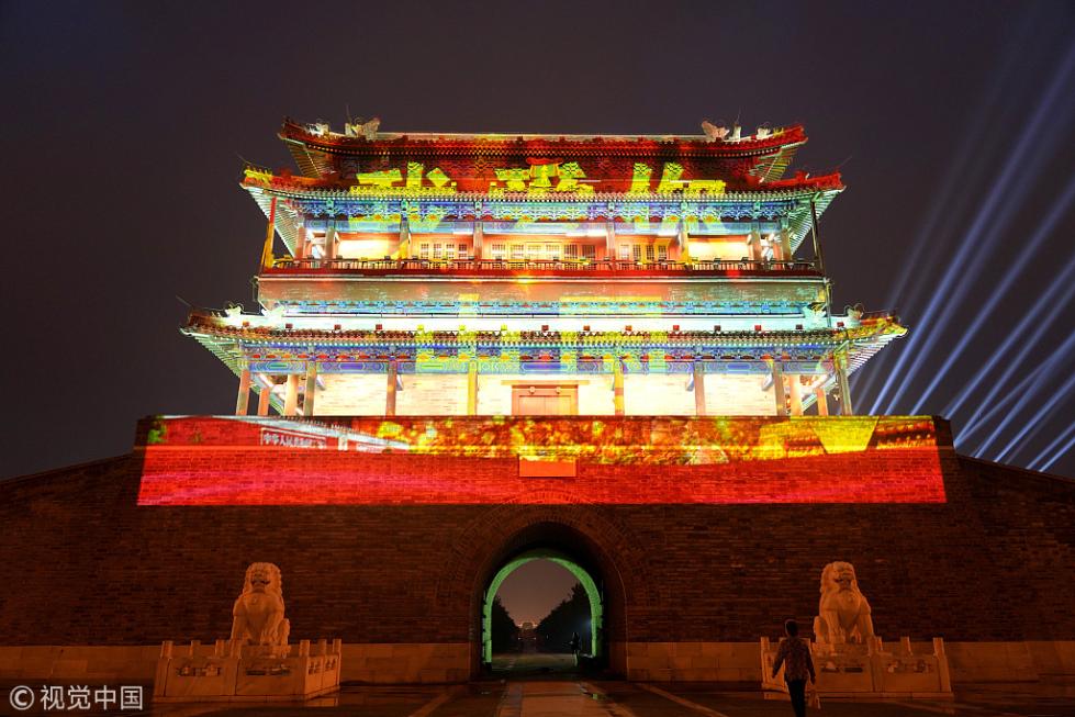 永定門城樓南廣場(chǎng)舉辦的“我愛你中國(guó)”迎國(guó)慶燈光秀于2018年9月28日晚正式向市民首秀。即日起至10月7日,每晚這里都將啟動(dòng)燈光表演。