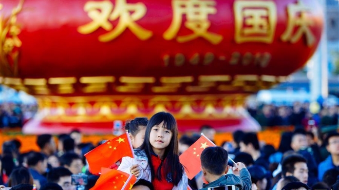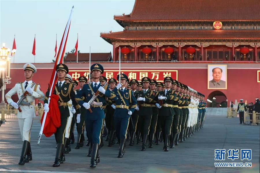 10月1日清晨,隆重的升國旗儀式在北京天安門廣場舉行,慶祝中華人民共和國成立69周年。新華社記者琚振華攝