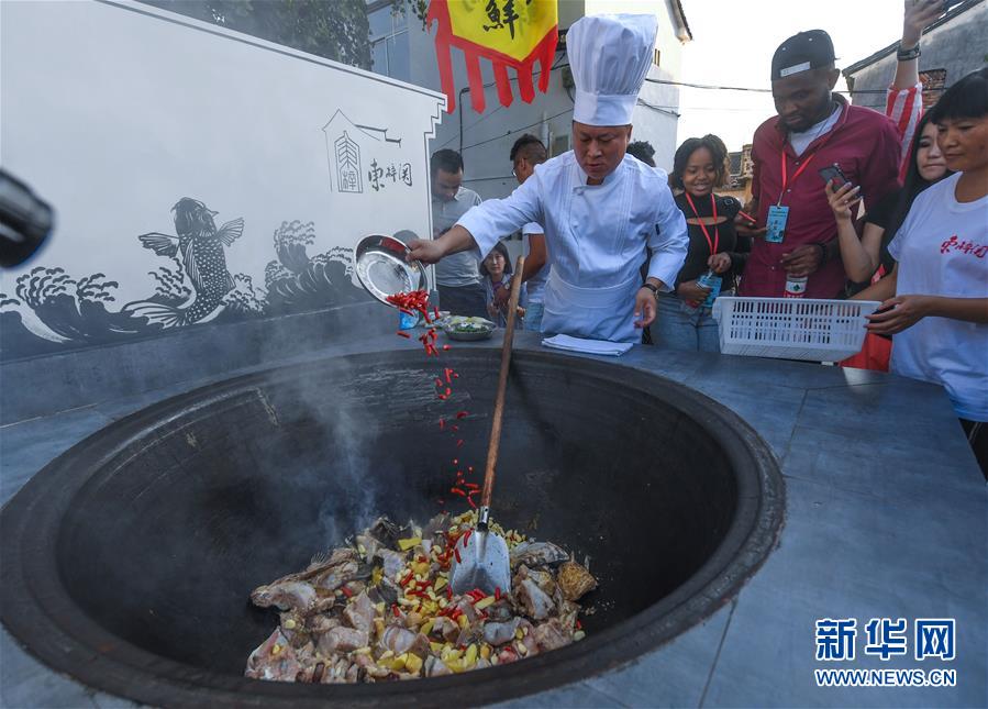 9月30日,廚師在中外游客的圍觀下烹飪“江鮮第一鍋”。當(dāng)日,浙江省杭州市富陽區(qū)場口鎮(zhèn)東梓關(guān)村開啟“江鮮第一鍋”,幾位大廚聯(lián)手在直徑1.5米的大鍋內(nèi)烹制美味江鮮,這也是當(dāng)?shù)亍敖r大會”的重頭戲。東梓關(guān)村有著1000多年歷史,古就是富春江南岸重要的商貿(mào)集散地,素有富春江“東流第一關(guān)”之稱。隨著近年來美麗鄉(xiāng)村建設(shè)的推進(jìn),東梓關(guān)村著力打造粉墻黛瓦的江南民居,同時依托富春江豐富的江鮮魚類資源,在秋季舉辦特色“江鮮大會”,通過江鮮捕撈體驗(yàn)、江鮮第一鍋、百鮮宴、農(nóng)家菜大賽等活動,吸引各地游客前來感受富春江漁民豐收的喜悅和千年古村的獨(dú)特魅力,推動鄉(xiāng)村特色旅游發(fā)展。新華社記者徐昱攝