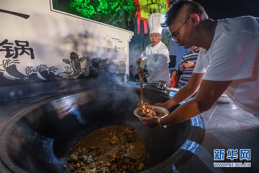 9月30日,廚師舀出一碗“江鮮第一鍋”美食。當(dāng)日,浙江省杭州市富陽(yáng)區(qū)場(chǎng)口鎮(zhèn)東梓關(guān)村開(kāi)啟“江鮮第一鍋”,幾位大廚聯(lián)手在直徑1.5米的大鍋內(nèi)烹制美味江鮮,這也是當(dāng)?shù)亍敖r大會(huì)”的重頭戲。東梓關(guān)村有著1000多年歷史,古就是富春江南岸重要的商貿(mào)集散地,素有富春江“東流第一關(guān)”之稱(chēng)。隨著近年來(lái)美麗鄉(xiāng)村建設(shè)的推進(jìn),東梓關(guān)村著力打造粉墻黛瓦的江南民居,同時(shí)依托富春江豐富的江鮮魚(yú)類(lèi)資源,在秋季舉辦特色“江鮮大會(huì)”,通過(guò)江鮮捕撈體驗(yàn)、江鮮第一鍋、百鮮宴、農(nóng)家菜大賽等活動(dòng),吸引各地游客前來(lái)感受富春江漁民豐收的喜悅和千年古村的獨(dú)特魅力,推動(dòng)鄉(xiāng)村特色旅游發(fā)展。新華社記者徐昱攝