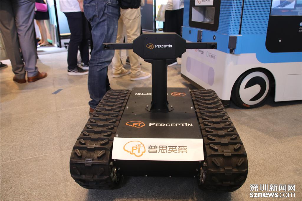 深圳創(chuàng)客周主會(huì)場(chǎng)展示的履帶式機(jī)器人