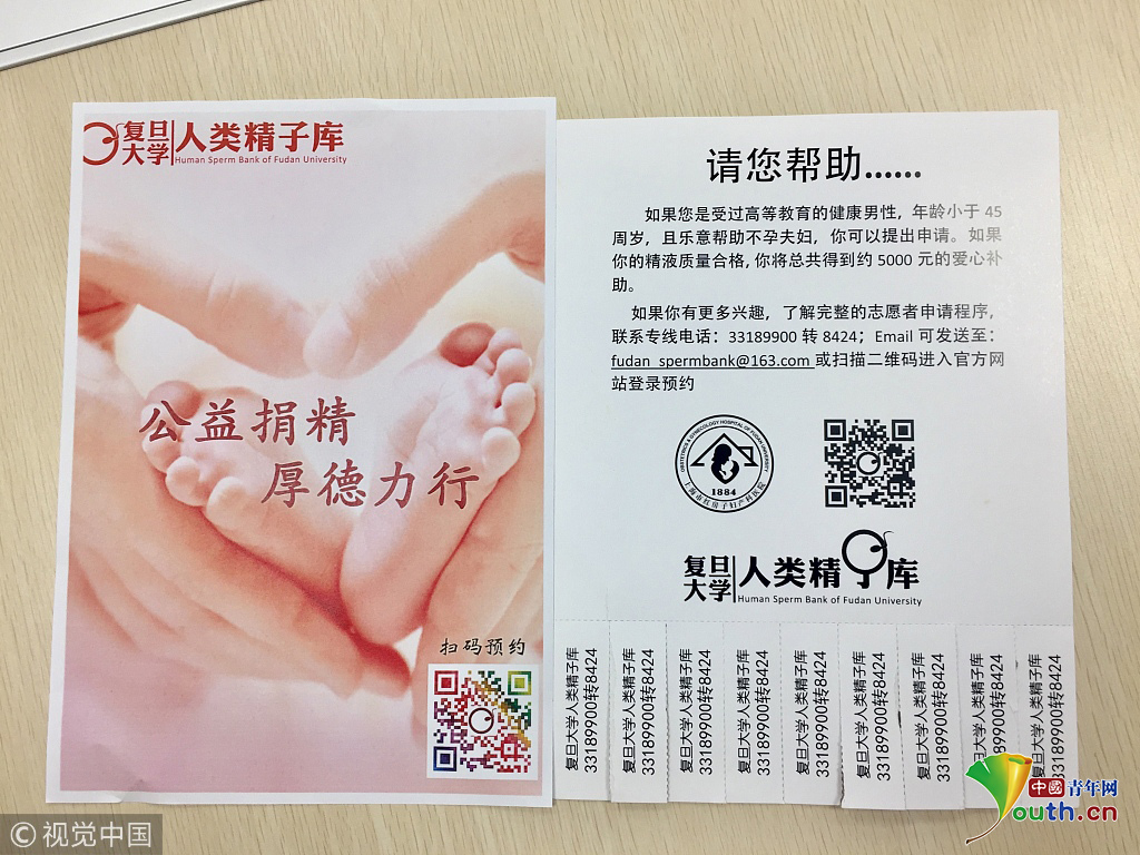 2018年9月20日,上海,實拍復(fù)旦大學(xué)人類精子庫。復(fù)旦大學(xué)人類精子庫宣傳單。圖片作者:陳斯斯