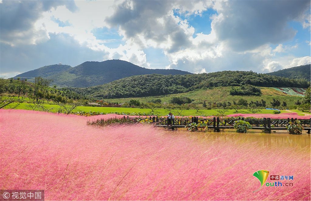 當(dāng)游客來到這里,立刻被眼前的一片浪漫的粉色所吸引。只見半人高的粉黛亂子草,縹緲如輕煙,搖曳似夢幻,伴著微風(fēng)掀起了一陣陣的波浪。