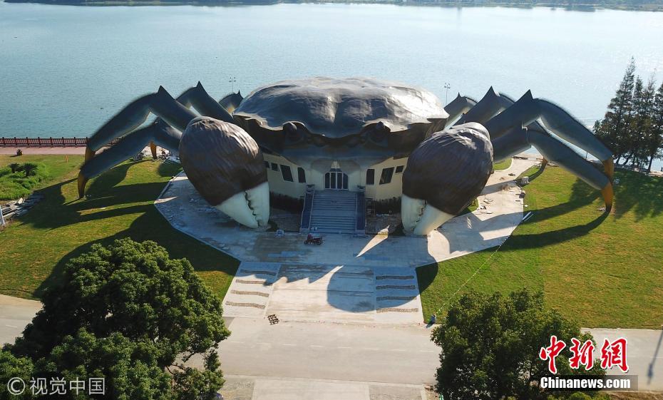 據(jù)了解,這是建造中的大閘蟹生態(tài)館,預計未來將在大閘蟹的白肚內(nèi)容納三層空間,集休閑、娛樂,以及有關大閘蟹體驗于一體的設施。圖片來源:視覺中國