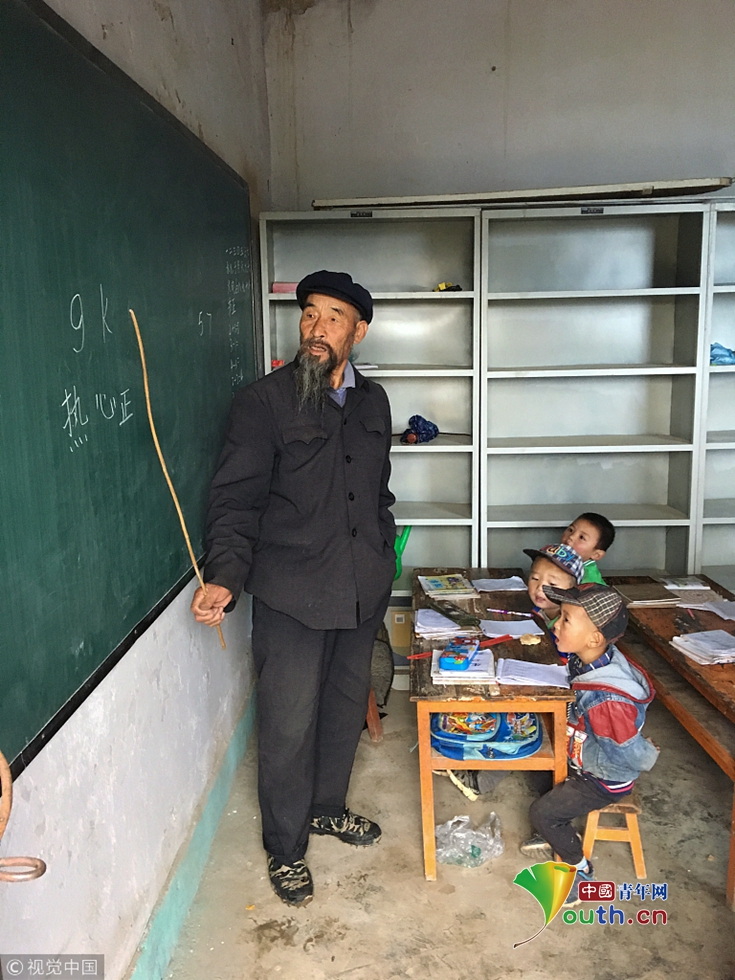 2017年9月26日,甘肅省武山縣樺林鎮(zhèn),有一個住著80多戶人家的小山村,叫柒坪村。村里有個沒有名字的幼兒園,里面有16個可愛的孩子。這個幼兒園的老師,不是女老師,更不是年輕人,是一位男老師,是一位75歲的老教師,他叫高世榮。圖片作者:一平/視覺中國