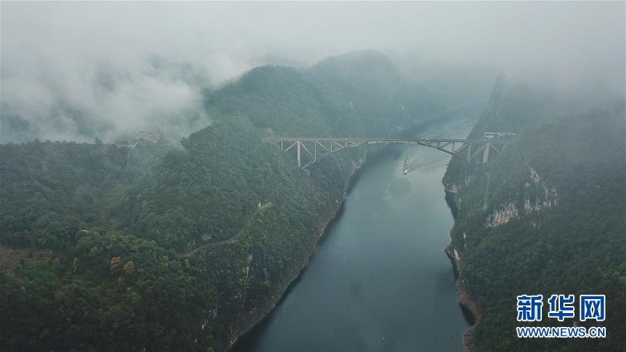 10月18日無人機(jī)航拍的江界河大橋。新華社記者歐東衢攝