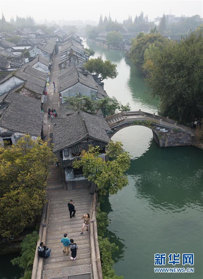 當日,浙江省桐鄉(xiāng)著名古鎮(zhèn)烏鎮(zhèn)秋色輕染、薄霧如紗,水鄉(xiāng)曉色靜謐怡人。 新華社記者翁忻旸攝