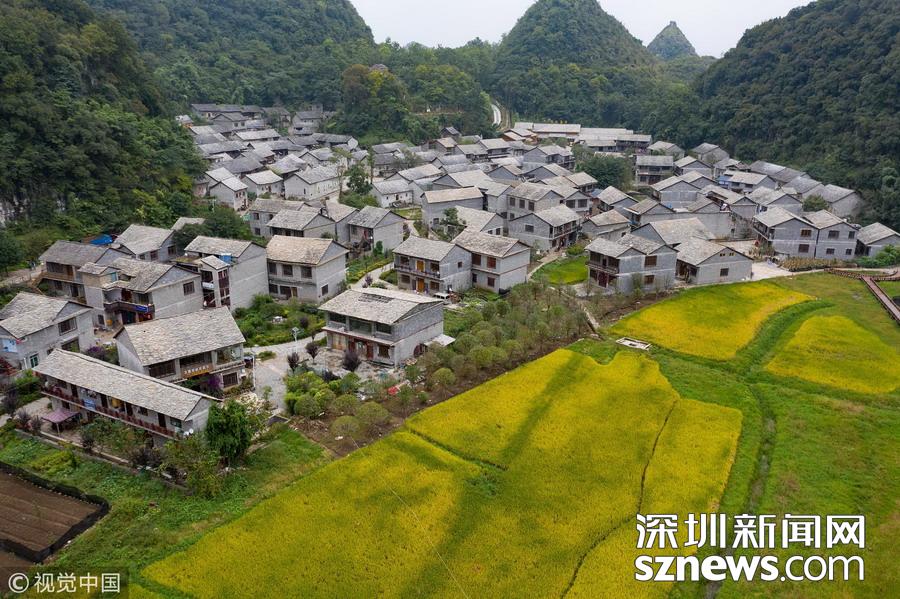 深圳新聞網(wǎng)訊  2018年9月27日,貴州安順,航拍坐落在群山中的鎮(zhèn)寧布依族苗族自治縣高蕩村。鎮(zhèn)寧高蕩村民居為石木結(jié)構(gòu)干欄式石板房,建造時(shí)間五、六十年至數(shù)百年不等,建筑保存基本完好。
