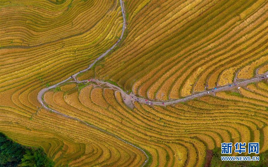 這是10月16日無人機(jī)拍攝的龍脊梯田秋色。金秋時(shí)節(jié),廣西龍勝各族自治縣龍脊梯田美如畫卷。 新華社記者 黃孝邦 攝